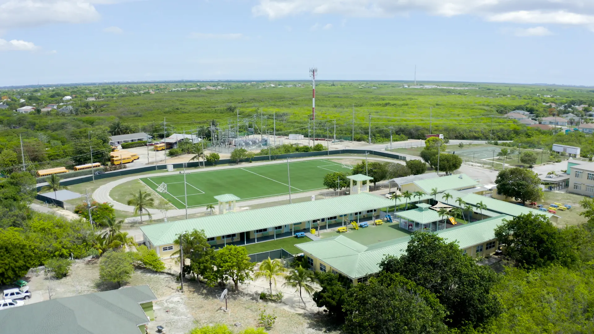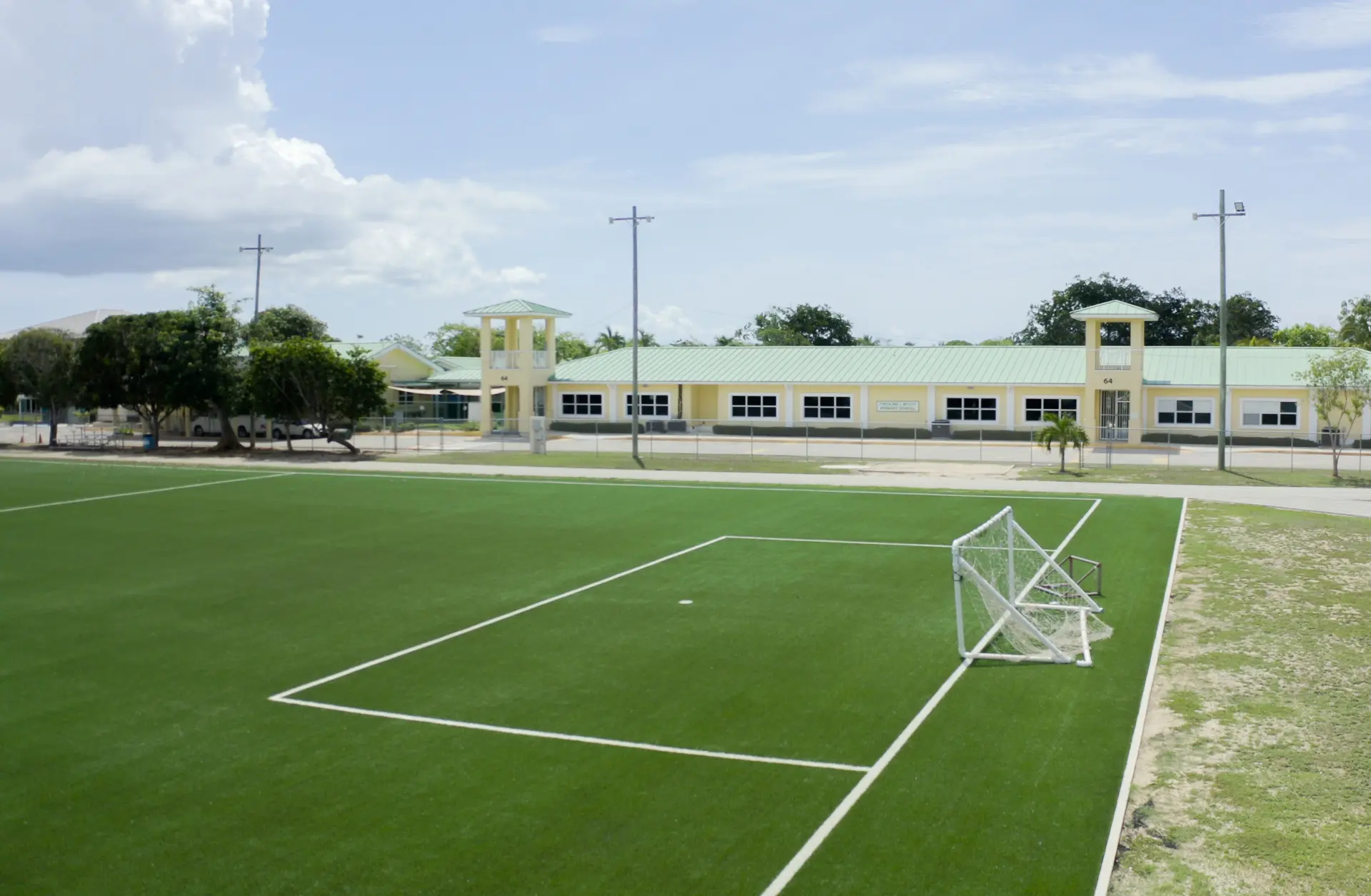 Built to withstand heavy use and the Caribbean climate, these surfaces require minimal upkeep and no downtime. That means more time on the field and less time worrying about wear and tear. Plus, their evergreen finish ensures a pristine look year-round, no matter the season.